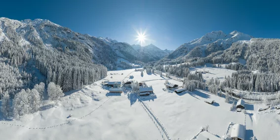 Fernab von Lärm und Alltag empfängt Sie das Hotel Birgsau inmitten der stillen, verschneiten Winterlandschaft des Stillachtals. Spüren Sie, wie der Trubel weicht – beim Langlaufen direkt vor der Haustür, beim Blick aus der Sauna auf die weißen Gipfel oder bei einem warmen Tee in unserem gemütlichen Restaurant.